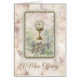 Katholische Massenkarten sind die perfekte Weise, Ihre Liebe bei jeder möglicher Gelegenheit zu zeigen. Dieses ist ein schönes Bild eines Goldchalice und -wirtes mit Lavendel-Blumen auf einem gemarmorten Hintergrund.