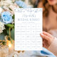 Mit dieser individuell gestaltbaren Bingo Floral Game Card machen Sie Ihr Brautparty unterhaltsam und unvergesslich. Freuen Sie sich auf ein ausgeklügeltes, staubblaues Design mit feinen Wildblumen und eleganter Kalligrafie. Dieses moderne und stilvolle Brautparty-Spiel verleiht Ihrer Feier eine charmante Touch und behalte den Gästen Unterhaltung. Wenn Sie Hilfe beim Anpassen Ihrer Bingokarte benötigen, lass mir bitte Bescheid - ich würde Liebe, dir zu helfen!
