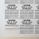 Maßgeschneiderte, robuste Vinyl Peel und Stick Wallpaper (2' x 4' Roll) leere Vorlage. Design, eigene Tapete für eine betont akzentuierte Wand oder einen ganzen Raum, 2' breite Rollen mit fünf Rollen-Optionen bis zu 12' Länge sowie eine Testuhr. Machen Sie Ihre ganz individuelle Anwendung glatter Vinyl oder texturierte Vinyl Tapete zu schaffen, um einen einzigartigen Wohnraum, Kinderzimmer oder Kinderzimmer themed Tapete, maßgeschneiderte Heimdekor oder Branded Retail, Bar, Café, Restaurant, Gastfreundschaft oder Büro-Umgebung. Diese individuell gestaltete, hochwertige Tapete ist für eine einfache Reinigung und Wartung konzipiert und macht die perfekte, individuell gestaltete Dekoration für Weihnachten, eine Babydusche, Hochzeit, Themenfeier, Firmenfeier oder andere besondere Anlässe. Anpassen durch Hochladen eines Fotos, Logos oder Designs und Hinzufügen von Text. Verwenden Sie die benutzerdefinierte Bearbeitung, um ein Muster mit fünf alternativen Tilingoptionen zu kacheln. Fügen Sie Ihr Logo und Ihr Branding für den geschäftlichen und geschäftlichen Einsatz hinzu.