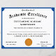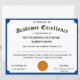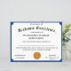 Das Design zeichnet sich durch einen blauen Schnitt mit dem Bild eines Goldmedaillenpreises in der unteren Mitte aus. Der Titel wird in traditionellem Schriftart für ein Zertifikat angezeigt. Anpassbarer Text. Die verfügbaren Trimmfarben sind rot, gold, blau und grün.