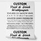 Maßgeschneiderte, robuste Vinyl Peel und Stick Wallpaper (2' x 6' Roll) leere Vorlage. Design, eigene Tapete für eine betont akzentuierte Wand oder einen ganzen Raum, 2' breite Rollen mit fünf Rollen-Optionen bis zu 12' Länge sowie eine Testuhr. Machen Sie Ihre ganz individuelle Anwendung glatter Vinyl oder texturierte Vinyl Tapete zu schaffen, um einen einzigartigen Wohnraum, Kinderzimmer oder Kinderzimmer themed Tapete, maßgeschneiderte Heimdekor oder Branded Retail, Bar, Café, Restaurant, Gastfreundschaft oder Büro-Umgebung. Diese individuell gestaltete, hochwertige Tapete ist für eine einfache Reinigung und Wartung konzipiert und macht die perfekte, individuell gestaltete Dekoration für Weihnachten, eine Babydusche, Hochzeit, Themenfeier, Firmenfeier oder andere besondere Anlässe. Anpassen durch Hochladen eines Fotos, Logos oder Designs und Hinzufügen von Text. Verwenden Sie die benutzerdefinierte Bearbeitung, um ein Muster mit fünf alternativen Tilingoptionen zu kacheln. Fügen Sie Ihr Logo und Ihr Branding für den geschäftlichen und geschäftlichen Einsatz hinzu.