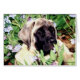 Ein atemberaubender Mastiff Welpe, der in den Bluebells liegt.