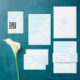 Wedding collection with fluffy clouds against a clear blue sky