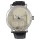 Uhr, Vintage Männeruhr mit schwarzem Lederarmband