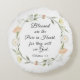 Ein einfaches Blumenkraut mit sanften, rosa und weißen Blume und Grünpflanzen ist ein inspirierendes Zitat-Rundkissen. Es zeigt einen Teil der Beatituden, Jesus geliebte Lehre von der Predigt auf dem Berg, Bibel Verse Matthew 5:8, "Selig sind die Reine im Herzen, denn sie werden Gott sehen."