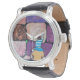 Uhr, Vintage Männeruhr mit schwarzem Lederarmband