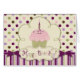 Süßer Tupfendruck mit zusammenpassendem Streifen- und Bogen- und Geburtstagsumbau des Blickes 3D und ein süßer kleiner Kuchen mit Kerze.