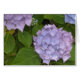 Eine hübsche Blumenkarte mit großen violetten Hydrangea-Blüten... helles grünes Blattwerk. Ideal für verschiedene Anlässe.