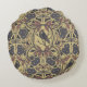 Dieses runde Kissen mit Krähen, Libellen und Käfer ist von Blume und Blätter umgeben, die in Lila- und Grautönen gehalten sind.
