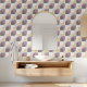Dieses moderne Design besticht durch eine auffallende Mischung aus lila, violetten, hellrosa, beige taupe und graufarbenen geometrischen Blätter, Quadraten und Halbkreismustern. Das Sortiment der spielerischen geometrischen Formen kombiniert mit dem schicken Farbschema erzeugt ein lebendiges und rhythmisches visuelle. Das Design ist faszinierend und raffiniert, trägt aber dennoch ein Element von Behaglichkeit und avantgardistischem Charme. Dieses Muster eignet sich für alle, die ein elegantes, zeitgenössisches Aussehen oder ein nostalgisches Retro-Ambiente suchen. Es passt sich den Geschmäckern und Persönlichkeiten an. Es ist ein vielseitiges Motiv, das eine Vielzahl von modernen Zuhause-Möbeln ergänzt, die sich ideal eignen, um Persönlichkeit in Bereiche wie Master- oder Gästezimmer, Wohn- oder Familienzimmer, Flure, Bäder, Schlafsäle, Eigentumswohnungen, Studios oder Appartements einzubringen.
