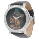 Uhr, Vintage Männeruhr mit schwarzem Lederarmband