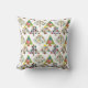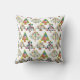 Dieses Kissen hat ein modernes Design von Weihnachtsbäumen in verschiedenen Stilen. Eine hat ein Gitter mit Rechtecken mit innen liegenden Sternexplosionen. Ein anderer hat abgerundete Rechtecke mit kleineren Rechtecken im Inneren. Ein Drittel hat gekrümmte Linien mit Sternen. Der letzte Baum ist ein Dreieck mit anderen kleineren Dreiecken im Inneren