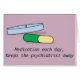 Ich entwarf diese Karte mit einer humorvollen Mitteilung über die tägliche viele Medizin wir mit einer Geisteskrankheit muss nehmen. Ich hoffe, dass sie jemand lächeln lässt. :-)