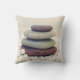 Ein Kopfkissen mit einem Foto, auf dem Steine übereinander liegen. Umgeben von weißen Felsen und kleinen weißen Blume.