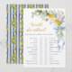 Delight your guests with this Would She Rather Bridal Shower Game, styled in a refined Mediterranean lemon floral theme. Featuring hand-painted watercolor lemons, gentle blue and green foliage, and soft yellow citrus accents, this game blends playful fun with elegant garden charm. Guests choose between two lighthearted options, sparking laughter and conversation throughout the celebration. Perfect for summer, garden, citrus, or destination-inspired bridal showers, it’s easy to play and doubles as stylish table décor. Designed to coordinate seamlessly with the She Found Her Main Squeeze Lemon Bridal Shower collection, this game helps create a cohesive, polished event your guests will remember.