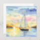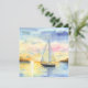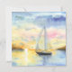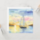 Meer bei Sonnenuntergang. Eine niedliche Yacht verlasst die Bucht und geht zum Meer. Die Aquarellbilder wurden gezeichnet und gescannt. Wasserfarbenlandschaft im Jahr 2024 im Freien gemacht.