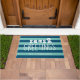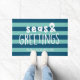 Meer und Grüße Türmatte in einem hellen und dunklen Aqua Streifen.