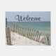 Hübsche Sanddünen mit Gras und verwittertem Zaun am Strand. Text liest, "Willkommen" aber fühlt sich frei hinzuzufügen, zu ändern oder zu entfernen, wenn Sie mögen.