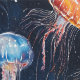 Aquatic Life Sea Creature Quallen Chalk Zeichnend Dekor. Lösungen für die Inneneinrichtung.