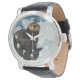 Uhr, Vintage Männeruhr mit schwarzem Lederarmband