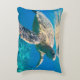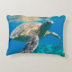 Unterwasseraufnahme einer Meeresschildkröte, die in kristallklarem Wasser direkt unter der Oberfläche schwimmt.