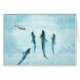 Hellblauer Untergrund mit vier tanzenden Delphinen und einem Siegel, das sie verbindet