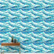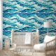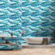 Ideal für jeden Strandbetrieb, Küstenstreifen, Hotels am Meer, Lodges, Resorts und Chalets, dieses dunkelblaue und türkisfarbene Blau mit weißen Wandmalereien, horiozonale Wellen und kleine weiße Pferde, die von verlassen nach rechts fließen. Bringen Sie den Strand drinnen, mit diesem modernen, zeitgemäßen und eleganten nahtlosen Muster, das leicht zu schälen und an glatten und strukturierten Wänden zu haften ist.