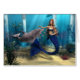 3D digitale Darstellung einer niedlichen Meerjungfrau und Delfin auf blauem Fantasy-Hintergrund