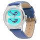 Kinderuhr aus Edelstahl mit blauem Lederarmband