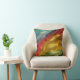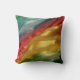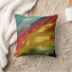 Dieses stilvolle Kissen besticht durch ein Foto aus mehrfarbigem Stoff, das an einen Regenbogen erinnert. Die Farben sind von grün über blau bis rot bis goldgelb und von grün bis grün. Das Design ist auf beiden Seiten.