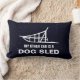 Text, der "MEIN ANDERES AUTO IST EIN HUND SLED" und eine weiße Silhouette eines Hundes auf einem sternenförmigen Hintergrund.