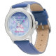 Kinderuhr aus Edelstahl mit blauem Lederarmband