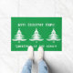 Schneebedeckte Winterbäume an einer skurrilen Tür mit Ihrer Adresse. Helfen Sie diesen Treiber, das Paket auf die richtige Veranda zu werfen. Holen Sie sich auch einen für Ihre Nachbarn! Herzlich willkommen zu Ihren Gästen mit Grüße der Saison.
