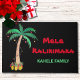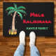 Mele Kalikimaka Festlicher Urlaub/Weihnachtsmatte. Diese lustige Türmatte ist mit einer Aquarellpalme, Weihnachtsbeleuchtung und Ananas dekoriert. Der Text ist anpassbar. Personalisieren Sie diese Matte mit Ihrem Namen. Original Wasserfarbe © Michele Davies.