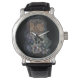 Uhr, Vintage Männeruhr mit schwarzem Lederarmband
