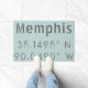 Memphis, Tennessee Längen- und Breitenkoordinaten in Not geratenen Schriftart geben diesem einen modernen urbanen Look