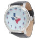 Die Armbanduhr aus schwarzem Leder mit dem Staat von Texas in der Mitte, mit dem Wort Texas auf dem Staat. Es ist von roten, weißen und blauen Zahlen umgeben! Alle Texaner kommen an meinem Laden und holen Sie sich eins!