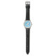 Klassische Uhr mit blauem Gesicht und schwarzem Gurt mit religiösem Taubendruck. Passen Sie diese Uhr an oder kaufen Sie, wie es ist.