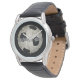 Mens Modern Soccer Ball Black Leather Armbanduhr