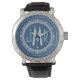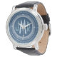 Elegante und klassische, saubere und einfache, kundenspezifische mit Monogramm Uhren für den besonderen Mann auf Ihrer Geschenkliste. Klassische, aber moderne, grau-weiße Hashmarken auf dem agatblauen Gesicht. Fett monogramm Initialen im Art Deko Gatsby Stil für die anspruchsvollen Herren — klicken Sie auf Anpassen, um die Größe, den Stil oder die Farben des Schriftartes zu ändern. Neue Monogramm-Uhren sind ein personalisiertes Geschenk für Geburtstage, Jubiläum, Abschluss, Ruhestand, Hochzeitsfeier, Feiertage und andere Meilensteine.