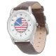 Men's USA Flag Classic Brown Leather Strap Watch Armbanduhr