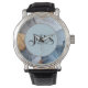 Uhr, Vintage Männeruhr mit schwarzem Lederarmband