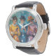 Uhr, Vintage Männeruhr mit schwarzem Lederarmband