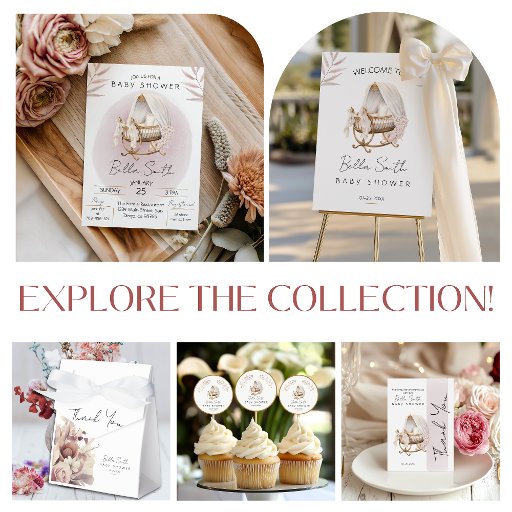 Ever wonder what royalty serves at their baby shower brunch? Well, now you can share the menu in style! This luxury menu card is the perfect way to display your delicious offerings. Inspired by the softest colors of dawn and featuring our signature gold cradle nestled in dusty pink foliage, it transforms your meal list into an elegant piece of party decor. From "Starters" to "Desserts," every course will look absolutely divine. Print one for every table and let the feast begin!