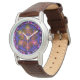 Uhr, Kinderuhr aus Edelstahluhr mit lila Lederarmband