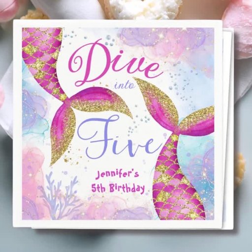 Dive into Five! Girls Pink Mermaid 5h BirthdayDesignt von H-Art Studio Design
