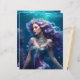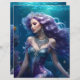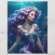Eine schöne Meerjungfrau mit kaskadierendem lila Haar im Ozean.