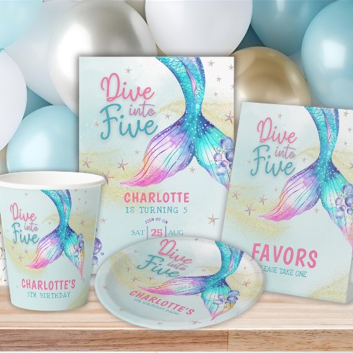 Mermaid tail Dive into Five Glitter  PapptellerMermaid tail Dive into Five Glitter  Pappteller (Vorderseite)Mermaid tail Dive into Five Glitter  Pappteller (Schrägansicht)