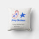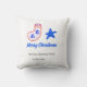 Merry Christmas blue star red stockings name date Kissen