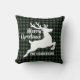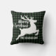 Merry Christmas Deer Green & Black Plaid Name Kissen